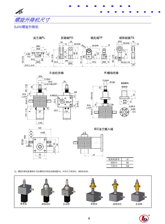 絲桿升降機-SJA5螺旋絲桿升降機安裝尺寸-魯德傳動